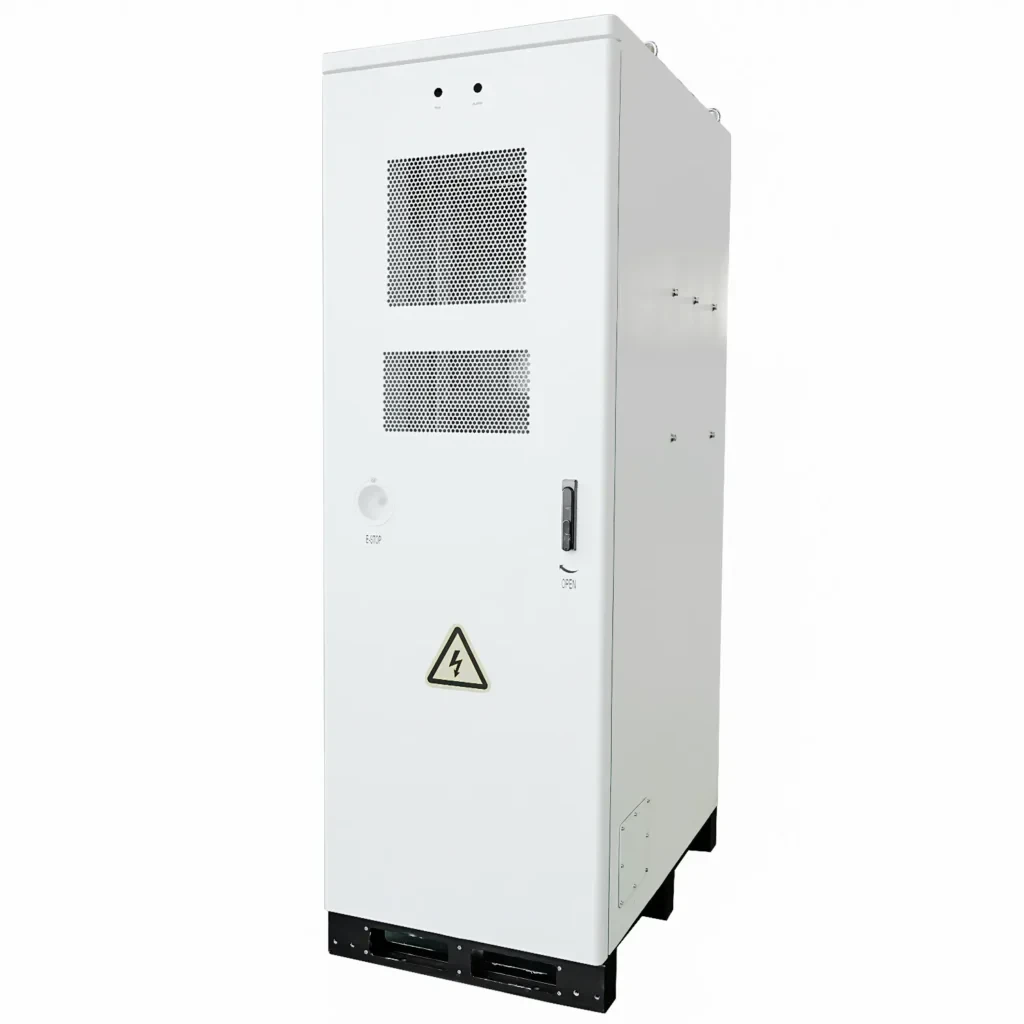 Het ontwerp integreert batterijmodules, BMS, thermisch beheer en aansluitingen in een enkelvoudige kast van 750 x 2200 x 1100 mm. Minimale installatieruimte, maximale opslagdichtheid per vierkante meter.