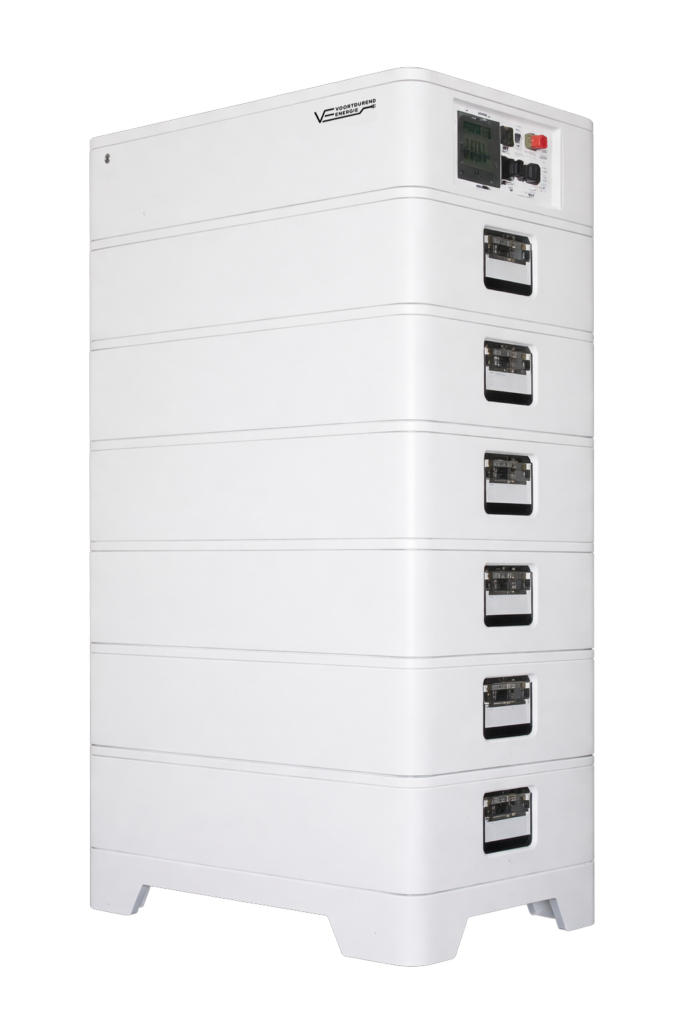 De VE-UN is een stapelbaar hoogspanning thuisbatterijsysteem van Voortdurend Energie. Start met 7,2 kWh en breid uit tot maximaal 61 kWh door tot 8 modules te stapelen. Met noodstroom, generatoraansluiting en slim energiebeheer. Geschikt voor particulier en zakelijk.